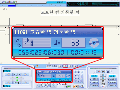 - ±×¸²ÀÇ ¿¹·Î º¸¸é, ·ÎµùµÈ °îÀº [109Àå °í¿äÇÑ ¹ã °Å·èÇÑ ¹ã][³»¸²³ªÀåÁ¶ 6/8¹ÚÀÚ] [¢Û=53]ÀÇ °îÀ̸ç, ÃÑ [55]¸¶µð °îÀ̸ç, ÇöÀç [22]¹øÂ° ¸¶µð¸¦ ¿¬ÁÖ ÁßÀ̰í [6]¹ÚÀÚ¸¦ Áö³ª°í ÀÖÀ¸¸ç, 1ºÐ 15Ãʸ¦ ¿¬ÁÖÇÑ °ÍÀ» ¾Ë ¼ö ÀÖ½À´Ï´Ù.