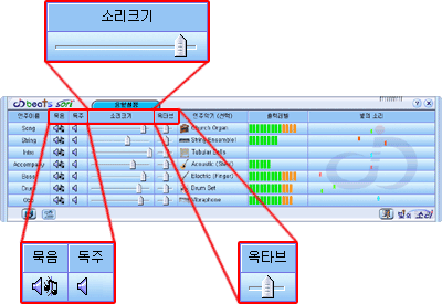 - ¹öưÀ¸·Î [À½Çâ¼³Á¤] âÀ» ¿­°í, °¢ Æ®·¢ÀÇ [¹¬À½][µ¶ÁÖ][¼Ò¸®Å©±â]